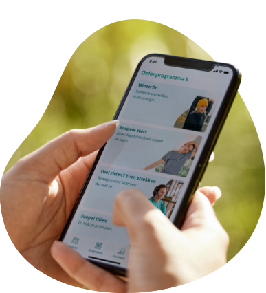 Kan jouw lichaam wel wat sterker en soepeler? De Soepel en Sterk Coach helpt. Een gratis app boordevol beweegprogramma’s ontwikkeld door fysiotherapeuten. Met een goede opbouw, belasting, variatie en herhaling. Gebruik de app altijd en overal. Zo voorkom je klachten als een stijve nek, rugpijn en vastzittende schouders.